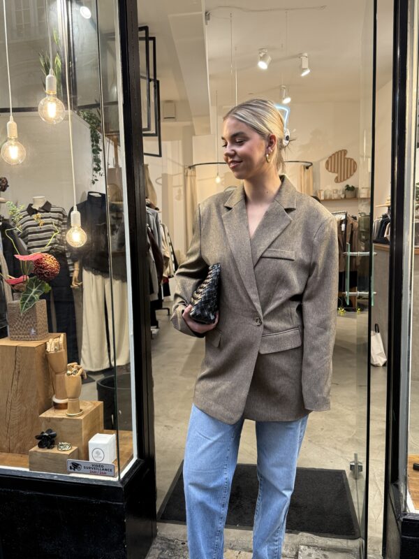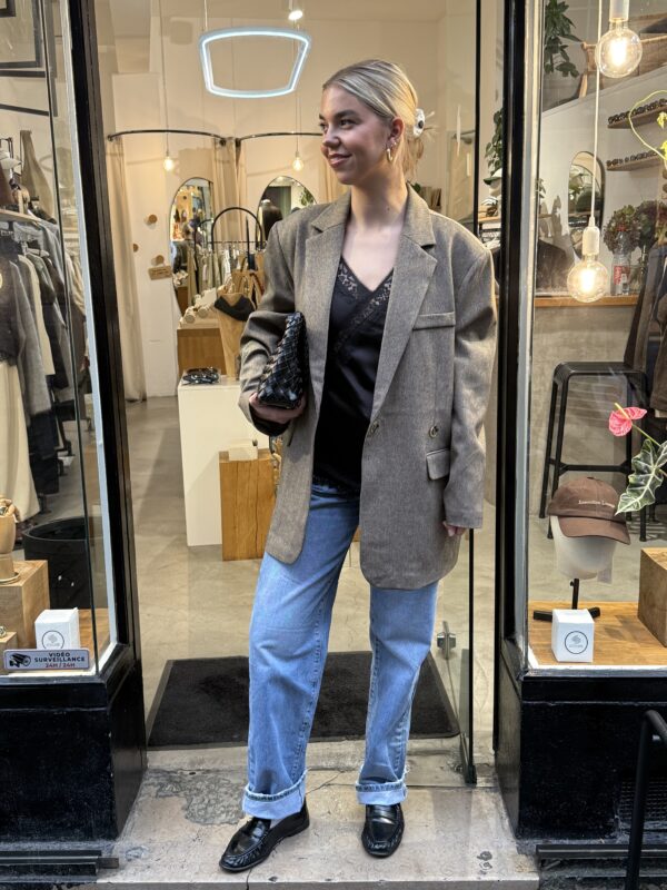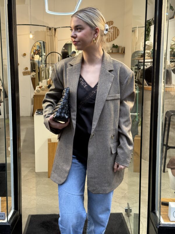 “Un must-have chic et moderne, ce blazer camel ajustable avec des boutons apporte une touche d’élégance audacieuse à vos tenues. Parfait pour un look à la fois raffiné et tendance.”