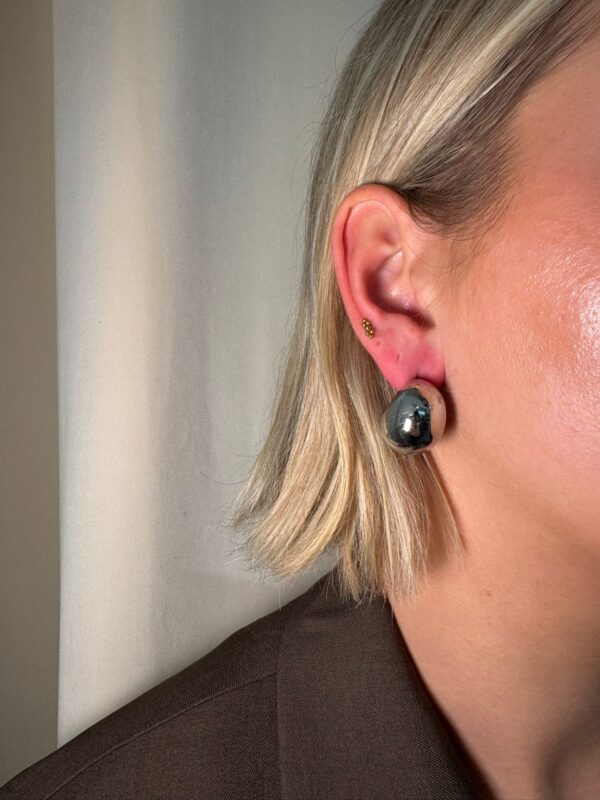 “Simples et élégantes, les boucles d’oreilles argentées à boules captivent par leur éclat discret et leur design intemporel. Un accessoire minimaliste qui sublime chaque tenue avec une touche de sophistication moderne.”