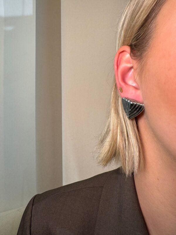 Boucles d’oreilles argentés triangulaire avec effet vintage.