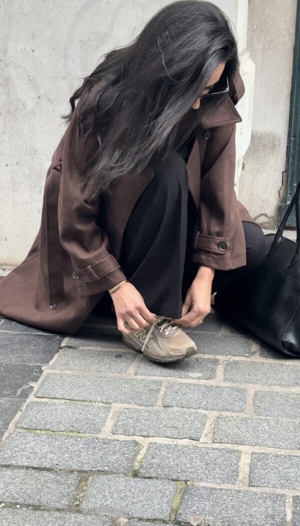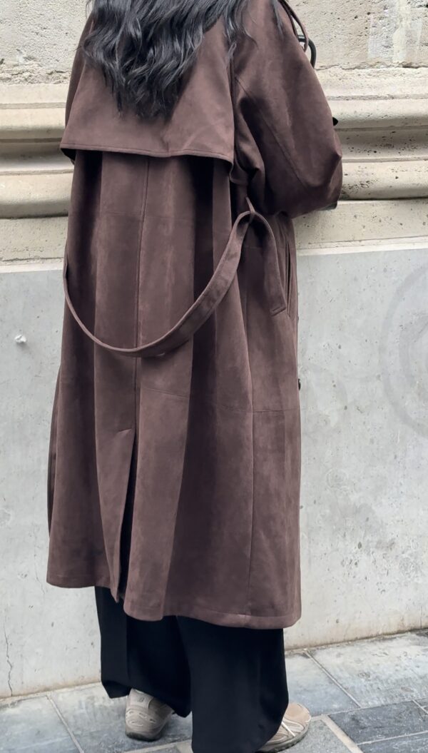 “Avec sa coupe épurée, ce trench en suédine marron incarne une élégance discrète et contemporaine. Une pièce intemporelle de la saison.”
